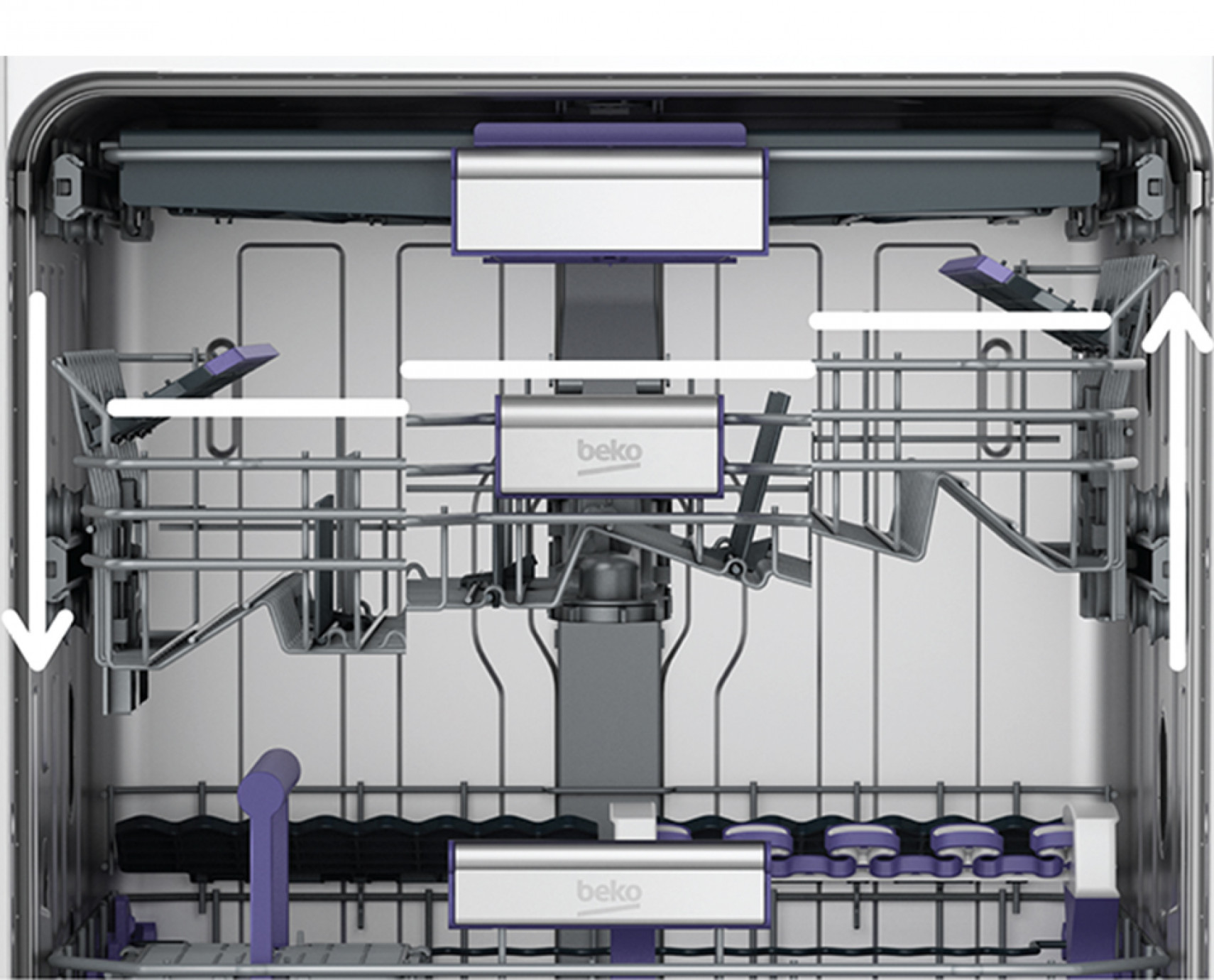 - Regulējamas un pielāgojamas atvilktnes ļauj pārkonfigurēt trauku mazgājamās mašīnas iekšpusi, pabīdot atvilktnes uz augšu vai leju, sniedzot iespēju pielāgot to, lai tā atbilstu trauku izmēram un uzlabotu Jūsu iekārtas iekšējo darbību atbilstoši Jūsu vajadzībām.