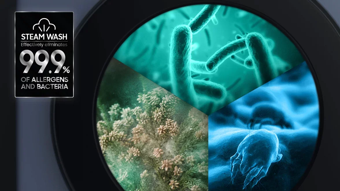 Katrs, kurš cieš no alerģijām, novērtēs veļas mašīnās iebūvēto Hygiene Steam tvaika programmu, kas dezinficē apģērbu un mājas tekstilu, iznīcinot alergēnus un samazinot alerģiskas reakcijas4, turklāt pēc 40 mazgāšanas reizēm veļas mašīna veic pašapkopi, lai iznīcinātu baktērijas un netīrumus, kas uzkrājušies mazgāšanas laikā.