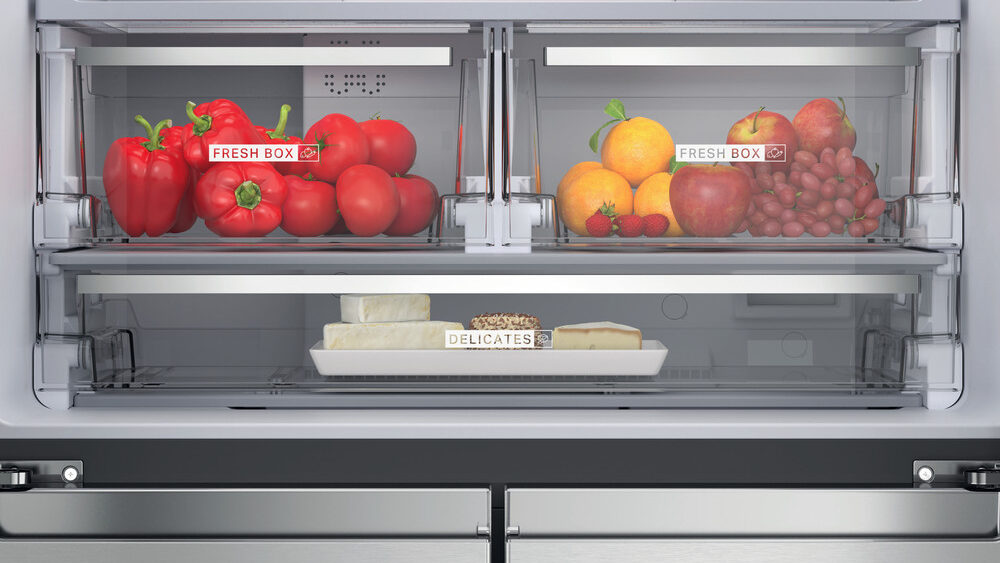 Uzglabājiet savu pārtiku divās īpašās atvilktnēs augļiem un dārzeņiem un vienā, kas paredzēta smalkiem produktiem.