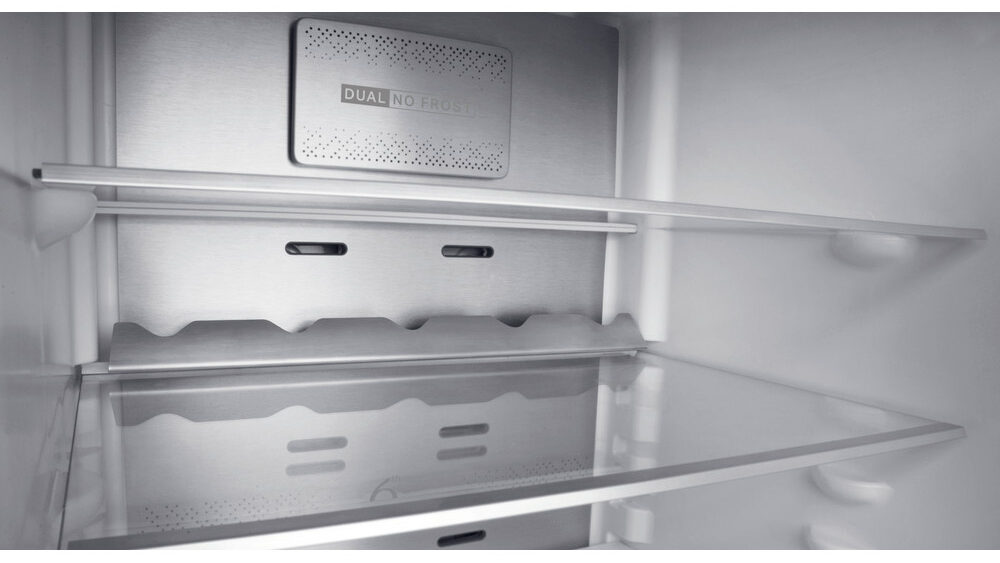 Divas neatkarīgas No Frost dzesēšanas sistēmas rada ideālu vidi pārtikas uzglabāšanai bez apsarmojuma veidošanās, nodrošinot ideālu temperatūru un mitruma līmeni, izvairoties no aromātu sajaukšanās starp plauktiem. Ievietojiet augļus un dārzeņus jebkur ledusskapī, un Dual No Frost sistēma tos saglabās svaigus līdz pat 15 dienām.