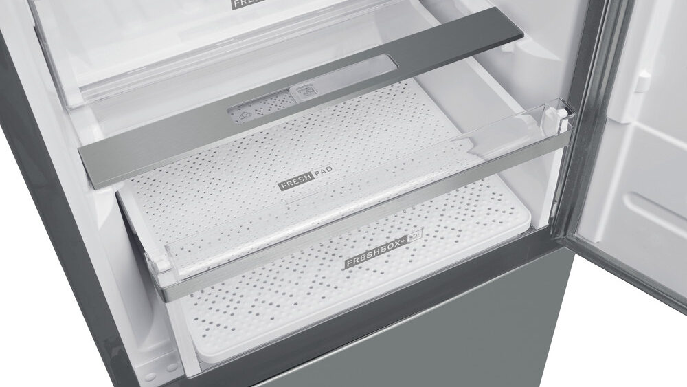 Saglabā augļus un dārzeņus svaigus! Inovatīvi Fresh Box+ integrēti paliktņi nodrošina vislabākos apstākļus pārtikas produktu uzglabāšanai. Atvilktne ar mitruma kontroles slīdni ļauj uzglabāt augļus un dārzeņus svaigus līdz pat 15 dienām.